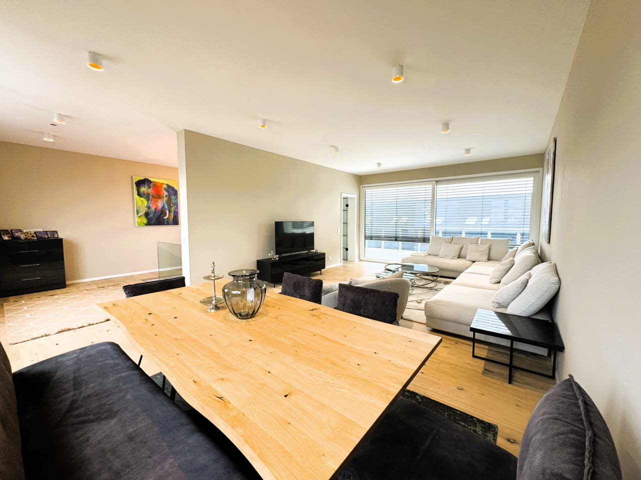 Ein weiteres großes Wohnzimmer mit Zugang zur Dachterrasse, die einen traumhaften Blick bietet.
